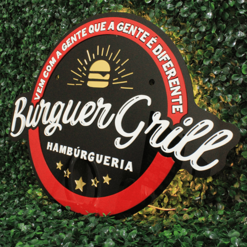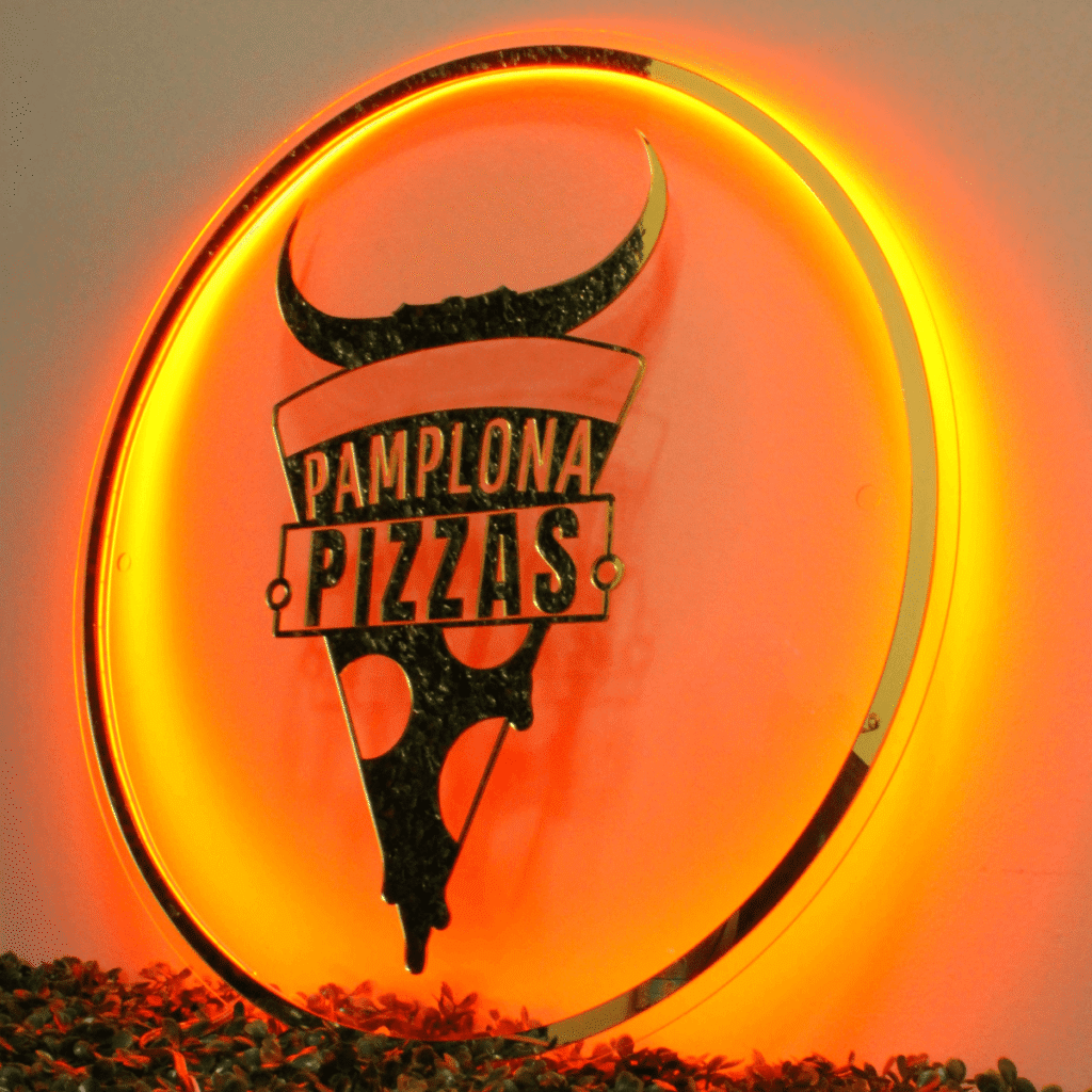 Corte a laser preciso, iluminação uniforme e materiais resistentes. Seu logo precisa transmitir autoridade.
